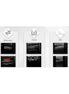 - 12 presets : ,MSK, Sein, Thyroide, Superficiel, Vasculaire, Pédiatrie, Carotide, Nerfs parties molles. Pour les anesthésistes, calcul automatique du débit du vaisseau, 2 presets utilisateur.